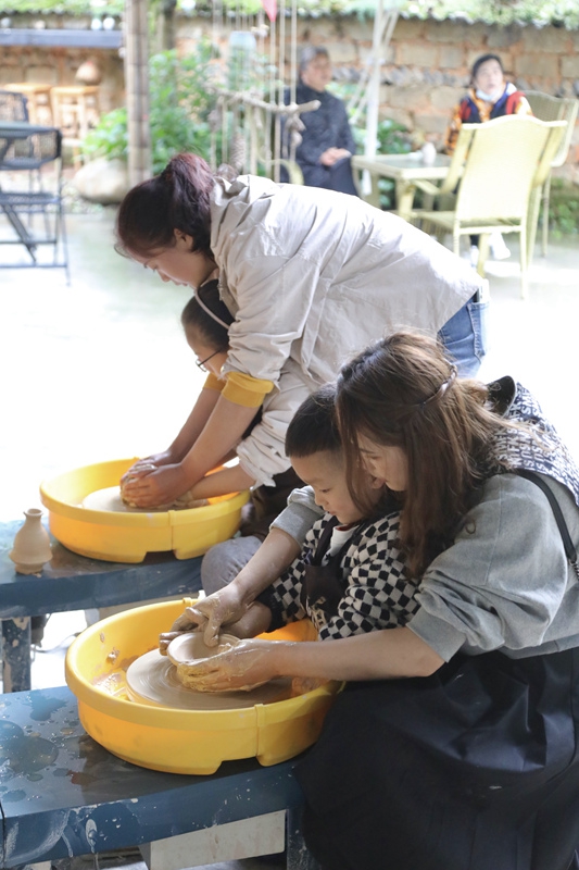 上午集合完毕,大家便来到陶艺体验馆,体验制陶的乐趣。在听完陶艺老师的悉心讲解之后,每个家庭都鼓足干劲,投入到了自己的艺术创作之中。随着转盘的缓缓转动,在孩子的小手和父母的大手交叠之中,一个个灵动的作品渐渐呈现出来,一张张稚嫩的笑脸也慢慢镌刻进父母心中。