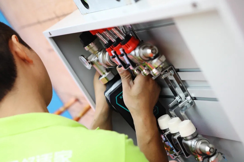 地板装饰材料之下错综复杂的盘管,属于隐蔽工程。不论多复杂的形状采暖区,在技师们手中都能迎刃而解,盘管边距、弯曲半径,直线度、平行度的把握都恰到好处,纵使终将被覆盖,也难掩美景人对于工艺的追求和执着。