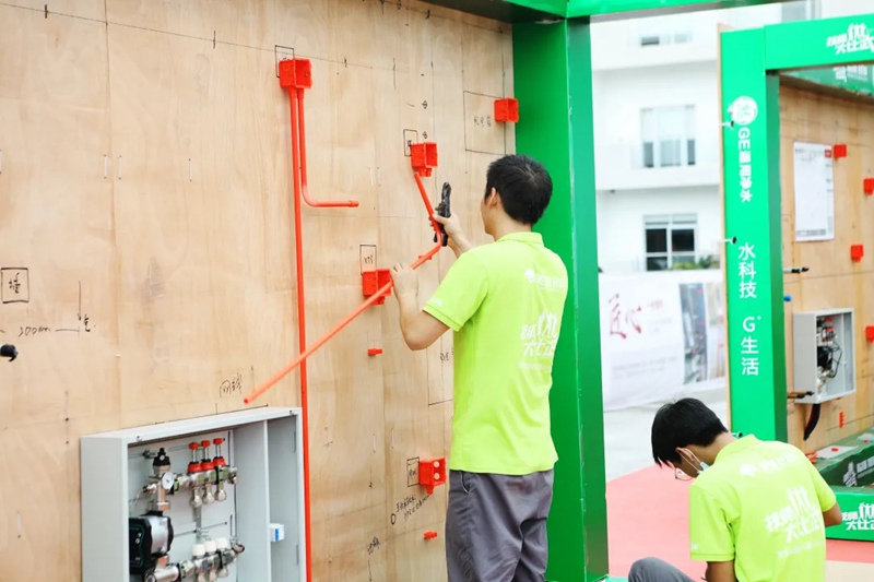 本次比武赛事模拟工地现场,设置技术交底赛、主管连接赛、云控布线赛、二期安装赛、地暖盘管赛、完工验收赛六大项比武项目;维保比赛设置有净水设备拆卸赛、净水设备组装赛、锅炉拆卸赛、锅炉组装赛、网线水晶头压接和检测赛、故障分析赛等六项比武项目。比赛环节流程设置全面检验技师们的安装水平,达到实战训练效果。