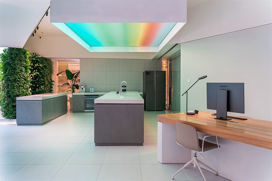 据悉,该店以“打造全场景智慧空间,将数字化带入每个家庭”为理念,通过客厅、卧室、阳台、洽谈室等功能区间营造,结合华为智慧屏,全方位展示居家生活中的全场景智能家居解决方案。利用华为全屋智能系统和生态产品,用户可现场充分感受由声、光、视听功能智慧联动带来的沉浸式、个性化智能惊喜体验。