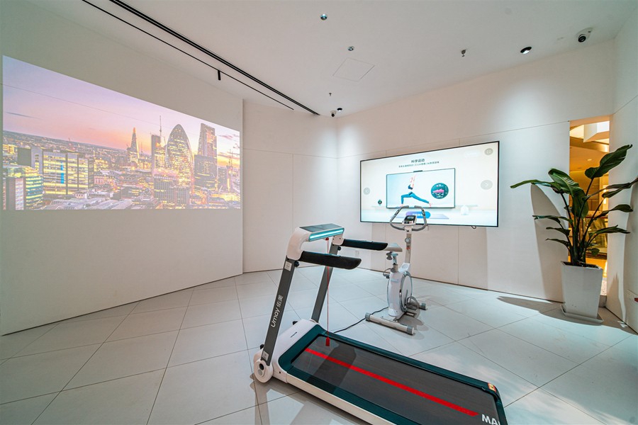 门店位于成都城南富森美家居商场1楼,内外联通,标识醒目。店面总占地达500余平方米,以绿植墙为区隔,划分为运动休闲区、卧室区、书房区、客厅会客区、厨房区等场景模块。为增强客户体验流畅感,充分体现科技未来感,在空间设计上,各区间无规则呈现,使得整体动线曲折,凸显转角有新意之感。此外,不同于其他家居体验店,华为全屋智能成都富森美店摒弃了样板间式的实景铺排,全面聚焦于智能体系的应用与感知,通过华为智慧屏和随心而变的氛围营造,精准映射智慧家的模样。彰显未来家不止所见,还拥有更多的可能。