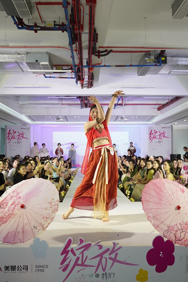 旗袍扇舞、汉服舞蹈、千手观音、流行歌曲、华尔兹、知否知否、K-pop……没有禁锢与束缚,各种风格轮番上演,有爱有趣有料,我们看到了美景女性职场丽人自信地展示自己、绽放魅力,表现出来的各种各样的女性美,让人感叹生活中再多角色也难抵丽人们今日熠熠生辉的出色。