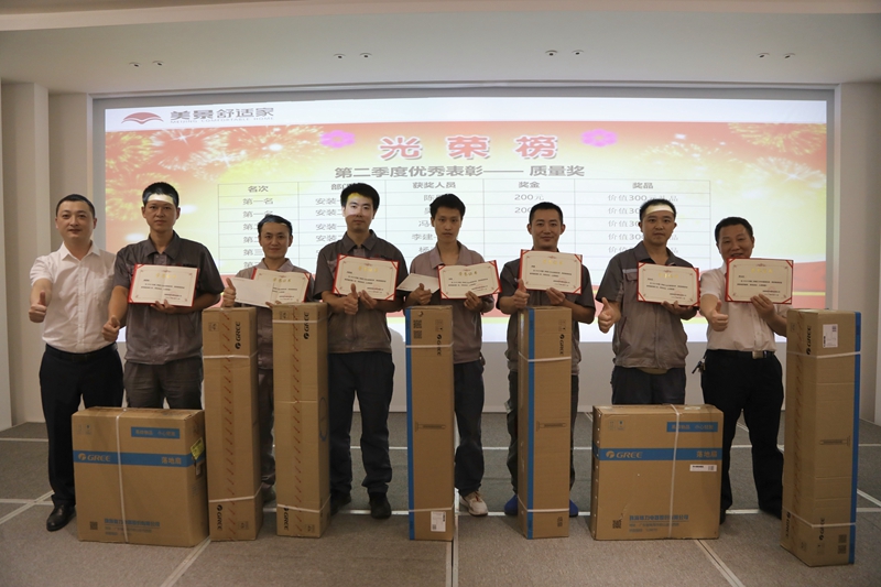 第三项议程是对晋级人员进行挂牌仪式,并对在第二季度中表现优异的人员进行了表彰、嘉奖。