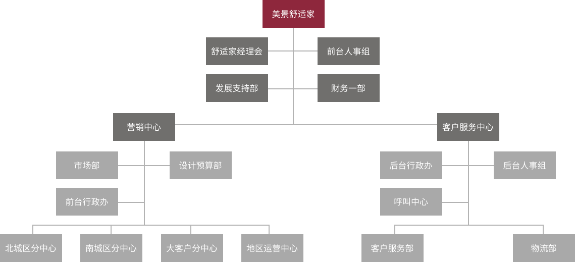 美景舒适家公司,现管理有接近1300多名人员。在天府新区的福年广场,有整层使用面积达2600平方米的营销中心,在成都开设有13家专卖店,在四川各地市州县有26家地区专卖店,近400名销售顾问,为客户提供售前咨询和测量,40多名暖通工程师,为客户提供技术支持。在温江海峡两岸科技园,有占地60亩的客户服务中心,近700多名安装维保服务技师,约150辆服务车辆,为客户提供安装调试、维修保养、物流配送服务。经过美景舒适家公司20年的努力,把经验形成了系统的知识,制定有详尽的企业实施标准,管理业务全过程。让用户真正享受到优质的智能舒适家居服务。(数据源于公司内部统计)