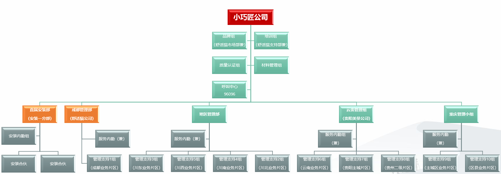 成都小巧匠机电设备安装工程有限公司(简称小巧匠公司),是亚英体育旗下,打造舒适家居行业专业安装服务平台的子公司,拥有同名服务品牌“小巧匠”,致力于为用户提供“小而巧 匠心造”的安装工艺产品和服务管理体系。